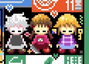 • Flower: a reference to the yellow flower worn by Chie (ちえ), the protagonist of Lcd Dem. This was the first small addition added, initially being made as a recolor of the white flowers referencing an area in Yume Nikki.