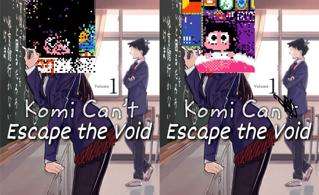 Before and after the invasion, someone had created these humorous manga covers of Komi being invaded by / escpaing the Void