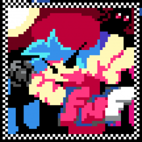 A streamer that goes by the name of RubberRoss decided to build this mural as a thanks to the FNF community for helping him with the creation of the Newgrounds logo art right besides it. It was created using a special tool he had that gave every viewer he had a specific pixel at random with the corresponding colour, and he would order everyone to fire at once, slowly creating the mural. Once it was created, the members of Project Funk decided to defend it.